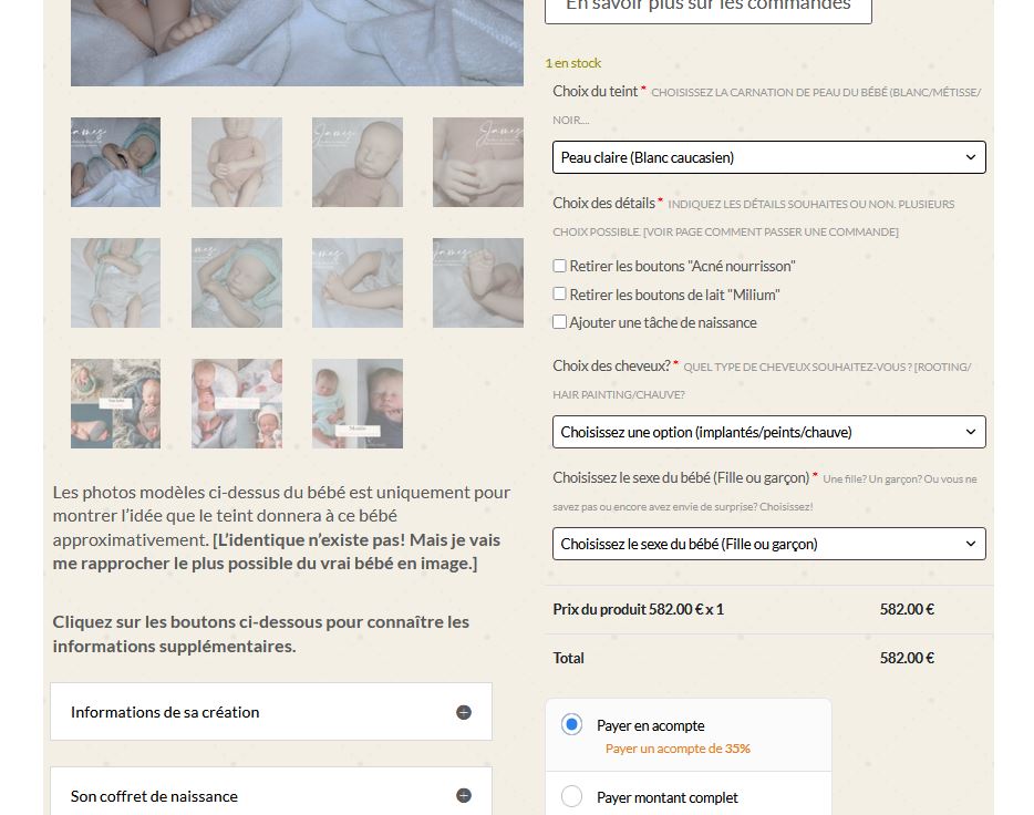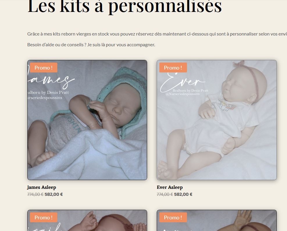 Une fois le bébé terminé, je réalise une séance photo professionnelle pour le présenter. Et je poste ceci sur mes réseaux sociaux et mon site internet.